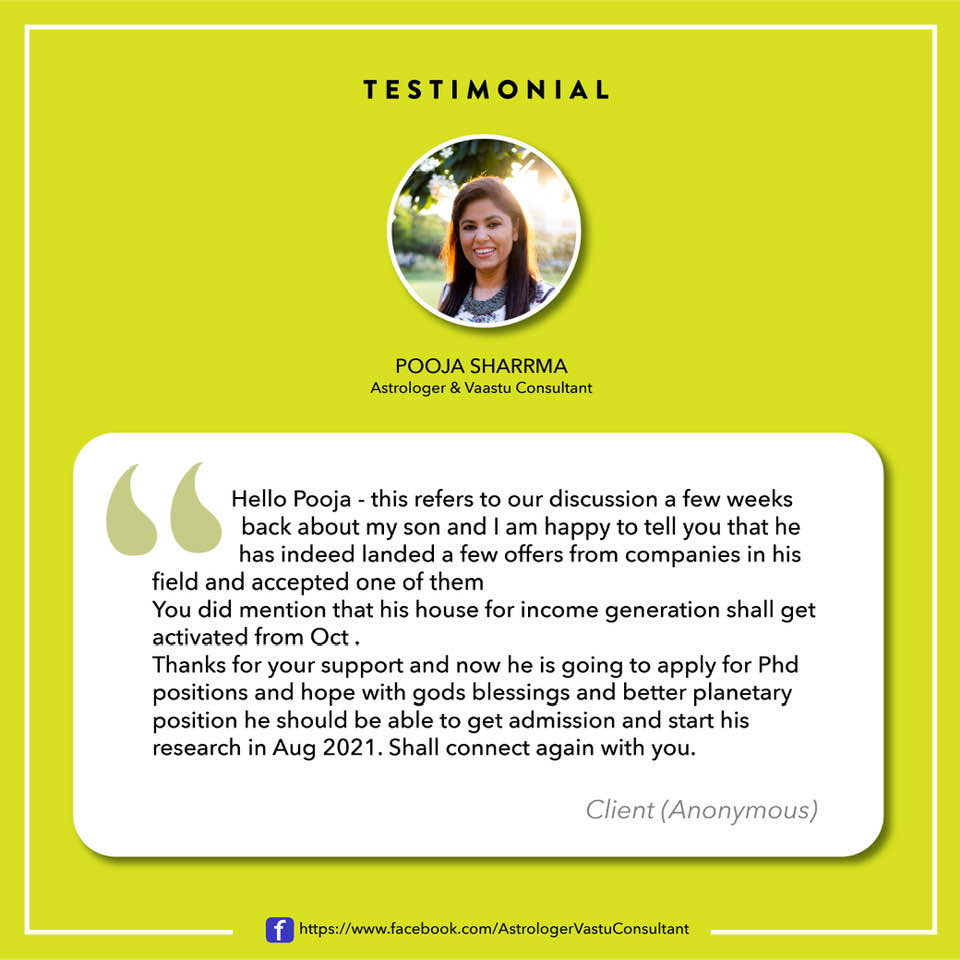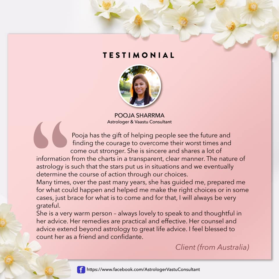 Jyotish Ratna, Bhushan, Prabhakar, Shastracharya, besides degrees the enriching experience of 21 years suceess stories, and testimonials make her passionate. She has transformed millions of lives globally. She is from the hills, the beautiful state of Himachal Pradesh, and lives in Gurgaon.